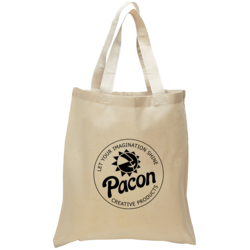 Cotton canvas tote bag is constructed of 100% Cotton. Features 20" reinforced handles. Large open main compartment perfect for tradeshows, open house visitors, shopping excursions, etc.