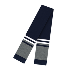 The 60" knit scarf with Elite fringe with contrasting stripes with a solid heather decoration area.